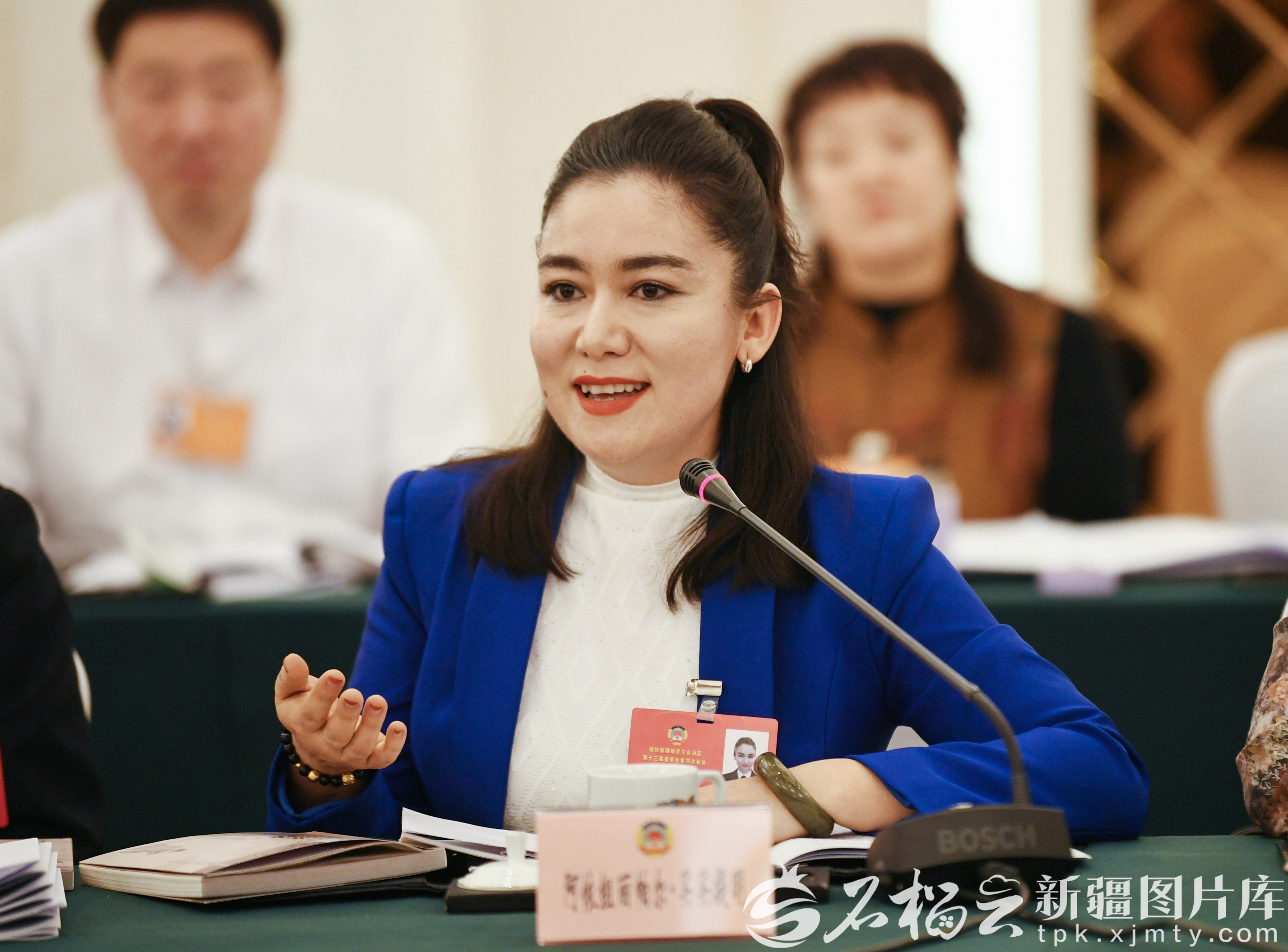 1月27日,共青团和青联、总工会、妇联、台联、侨联、对外友好界委员分组讨论政府工作报告、自治区“十五五”规划纲要草案、计划草案报告和预算草案报告时,阿依组丽帕尔·买买提明委员围绕如何提升青少年综合素质等内容发言。石榴云/新疆日报记者 秦梅花摄