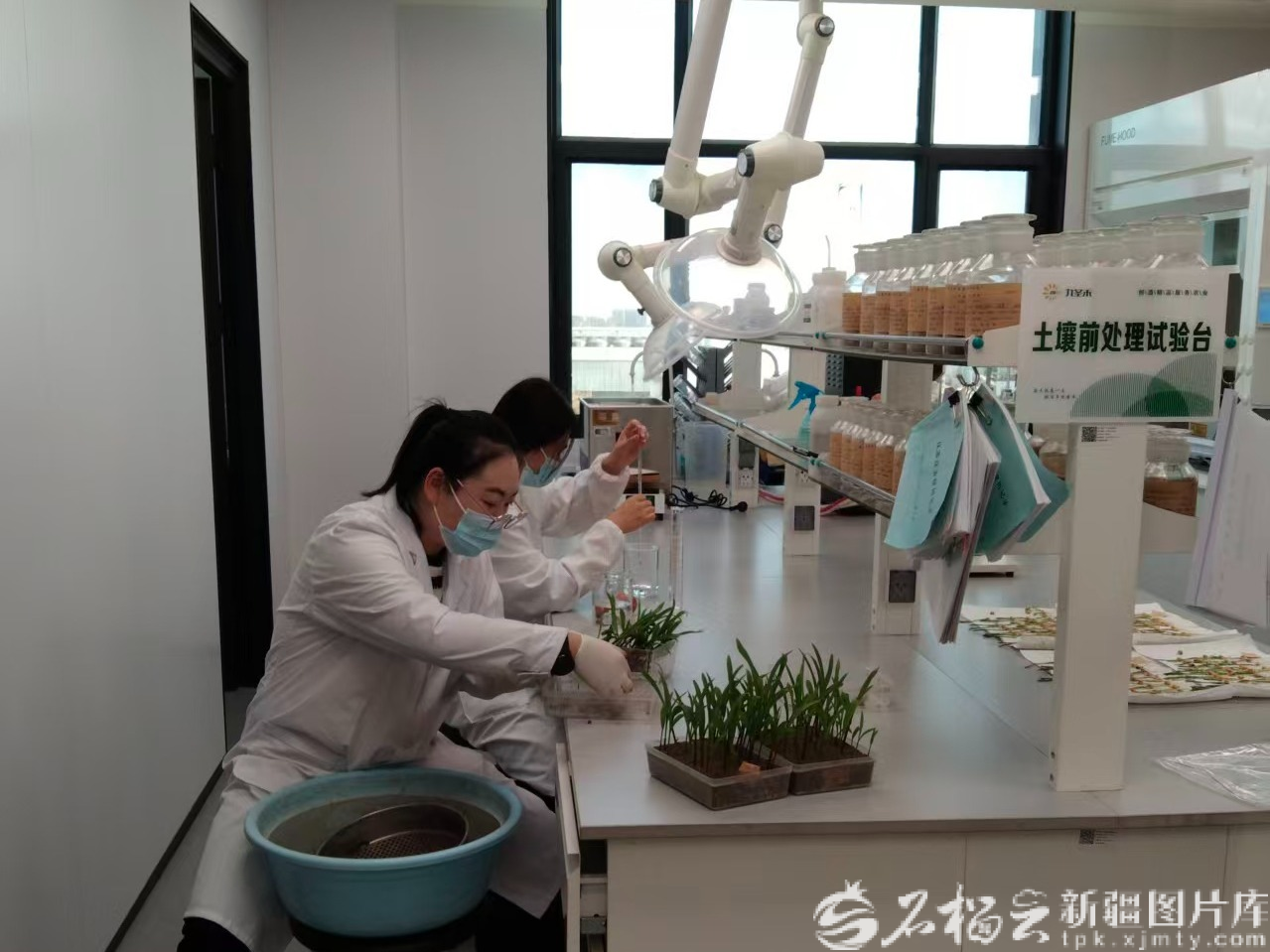 在九圣禾农业发展有限公司的试验室里,科研人员分拣、观察新品系种苗(资料图)。石榴云/新疆日报记者 冉虎摄