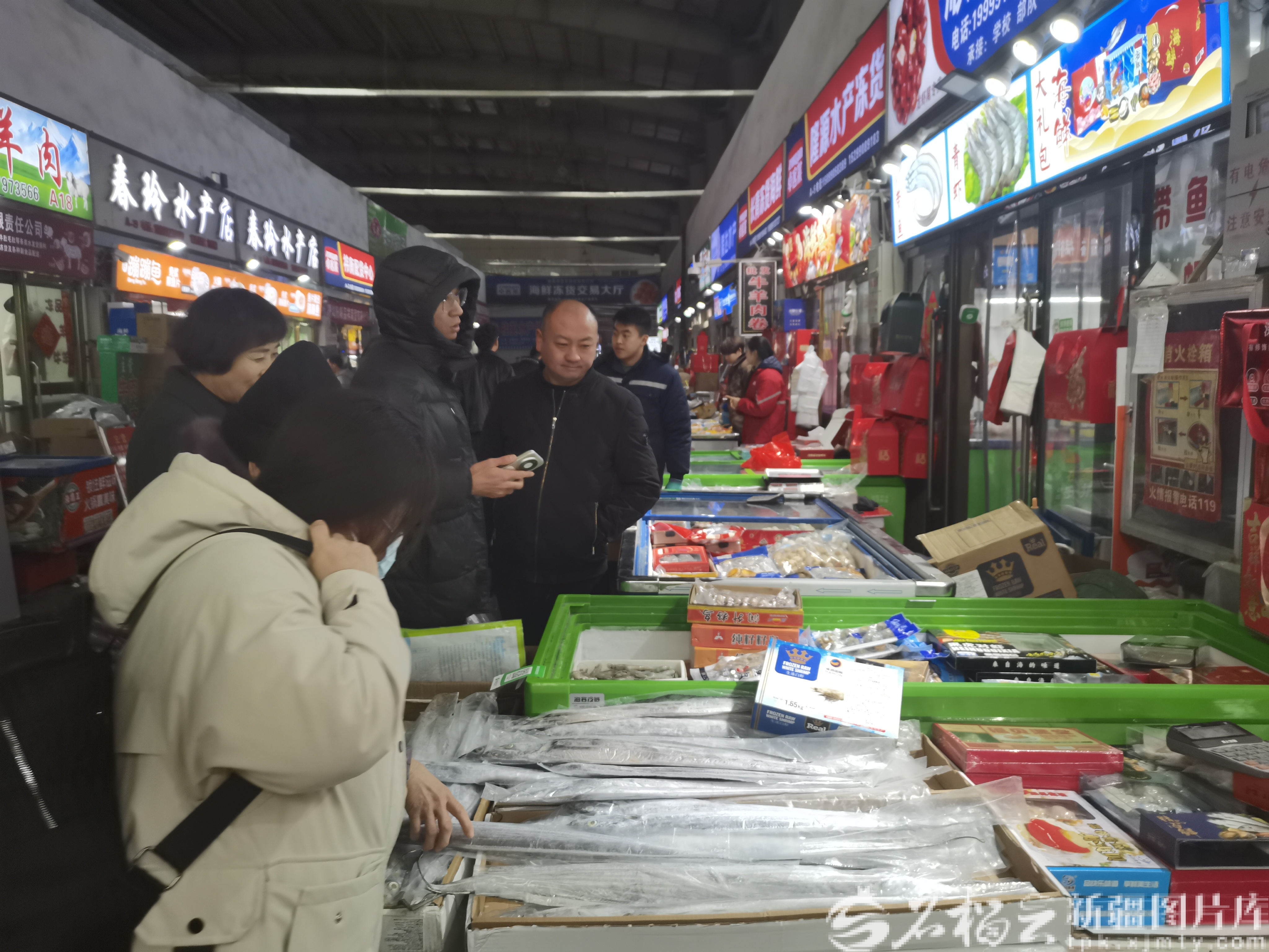 2月9日,顾客在乌鲁木齐市新北园春市场海鲜专区选购海鲜冻货。天山网-新疆日报记者 高峰摄