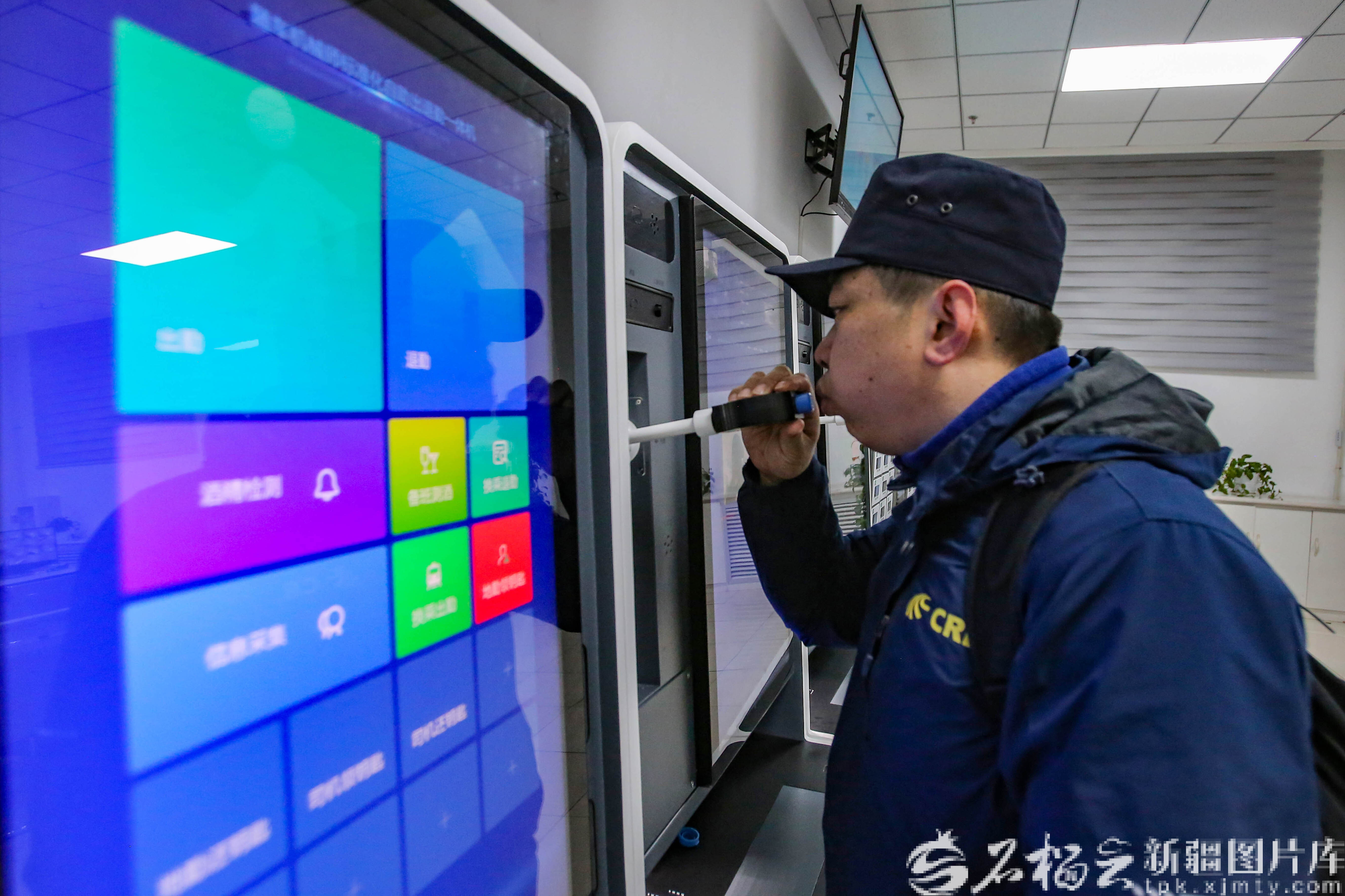 2月5日凌晨,DJ7002次动车组随车机械师孙春宇完成人脸识别与酒精测试后领取动车钥匙。