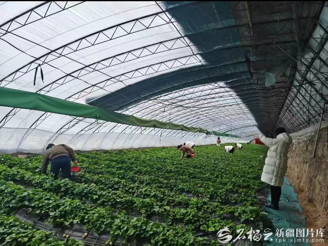 说话间,村民周功翠带着几位刚滑完雪的游客走了进来。他们脱下外套,拿起小篮子俯身采摘,欢声笑语填满大棚。