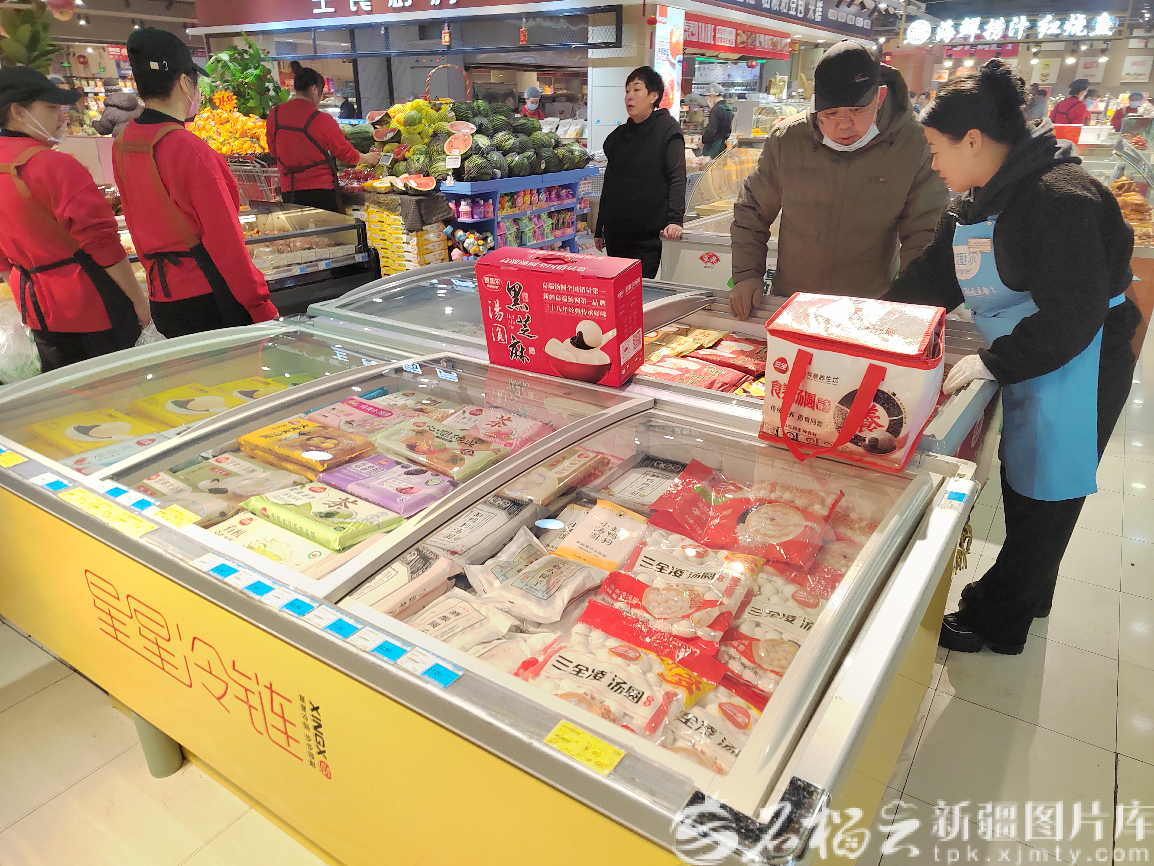 当日,农历正月十三,记者走访乌鲁木齐市大型超市、农贸市场、社区蔬菜副食品直销点,看到包括汤圆在内的节日必需品供应充足,市民按需选购,为元宵佳节做准备。