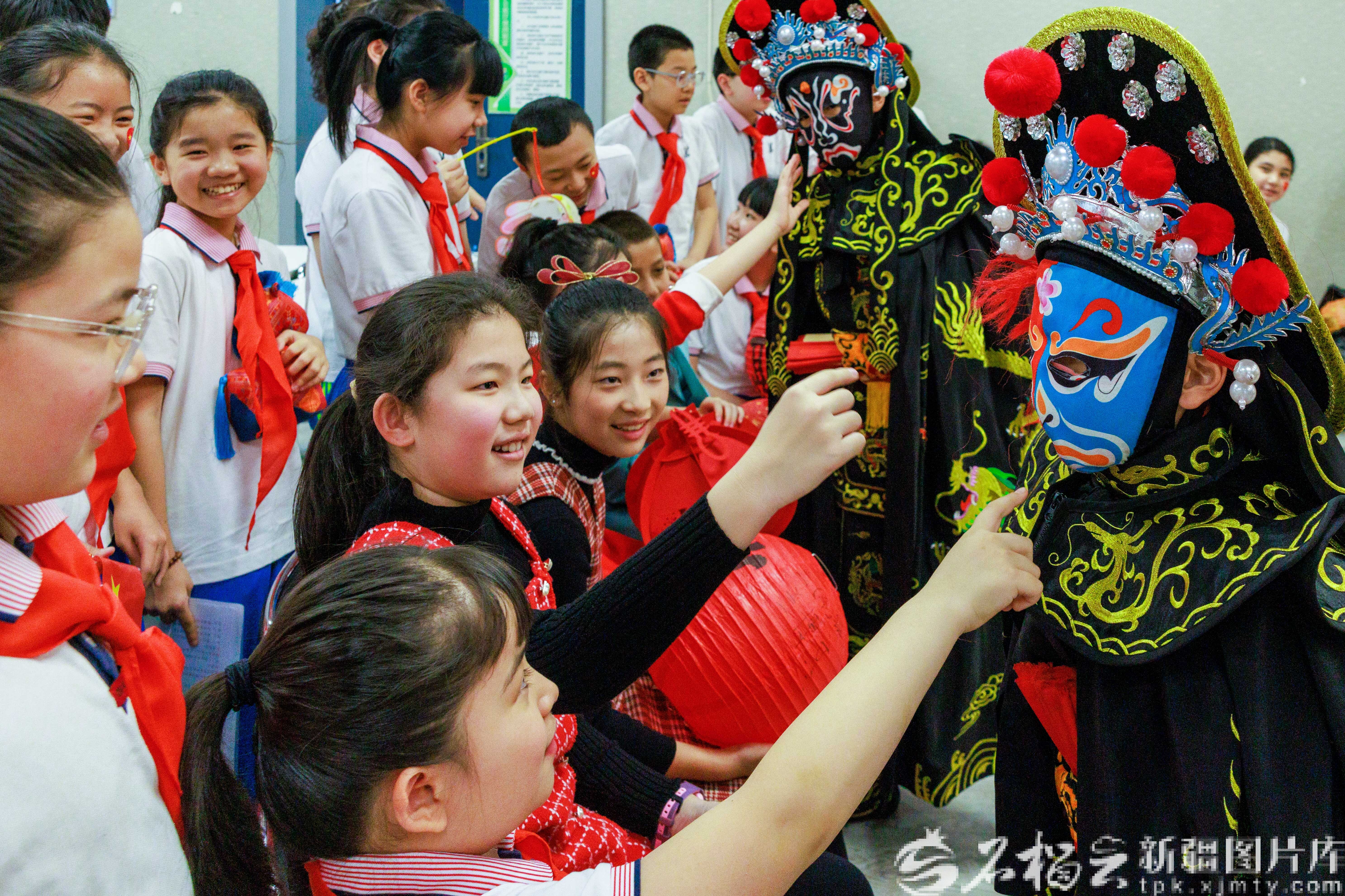 3月1日,乌鲁木齐市第二小学开展丰富多彩的年俗文化活动,师生们一起猜灯谜、吃汤圆、看川剧变脸,欢欢喜喜迎元宵。孙振嵩摄