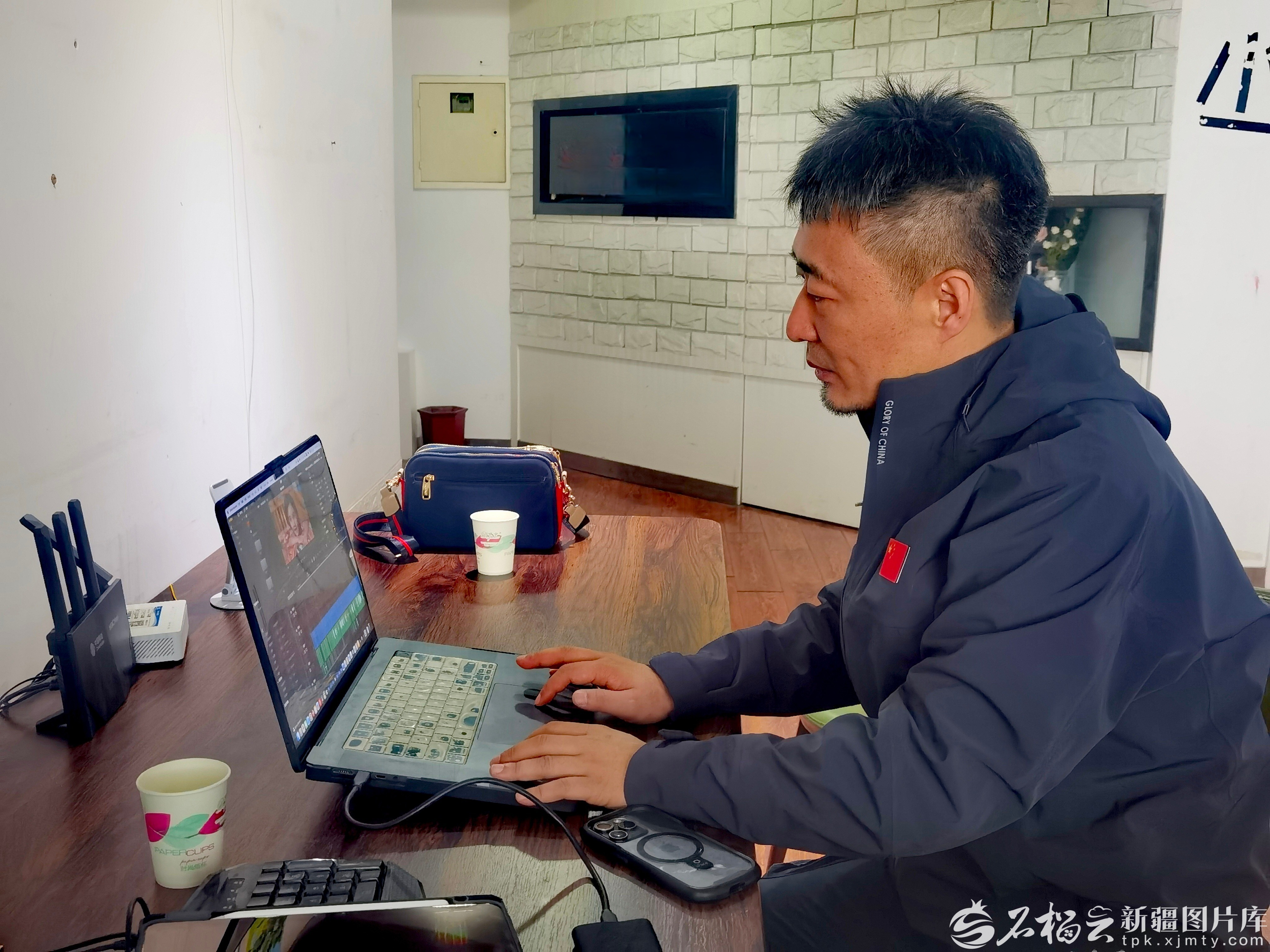 李慧星在工作室制作短片。天山网-新疆日报记者 银璐摄