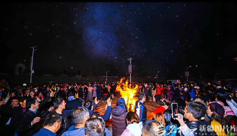 3月6日,巴格村篝火晚会现场,游客和村民载歌载舞。陈兴阳 摄