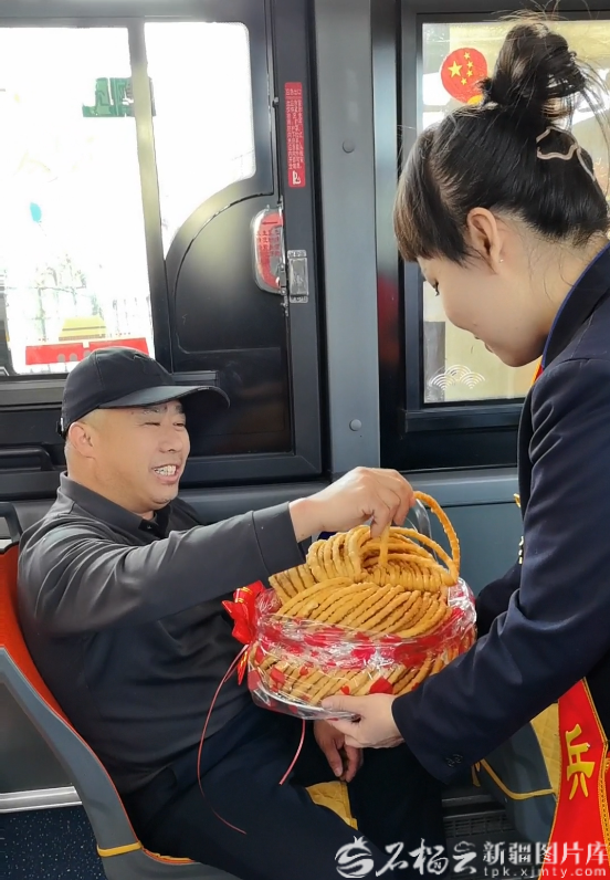 为增添节日氛围,乌鲁木齐公交集团经营一部五车队305路驾驶员白丽黎特意将车厢布置得温馨喜庆。她摆上自家准备的、色泽金黄香酥可口的馓子等点心,把小小的车厢打造成暖心的“移动团圆屋”。