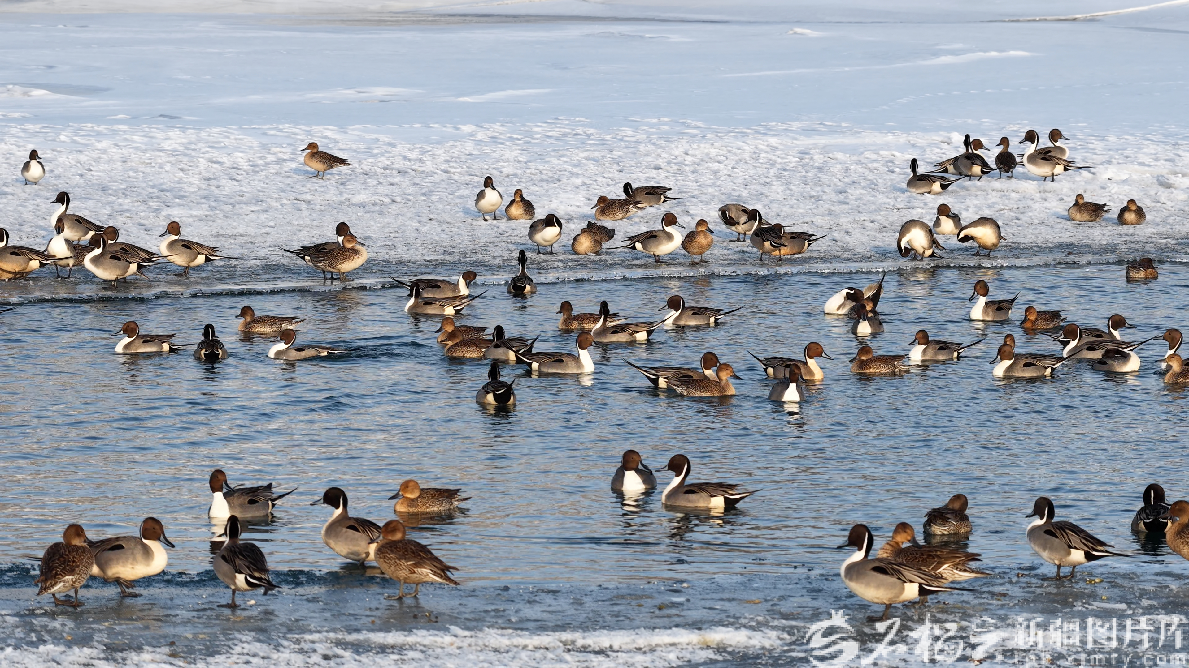 与此同时,在呼图壁县湿地,观鸟爱好者杨勇发现,尽管前几天突如其来的大雪覆盖了草场,大群的灰鹤、灰雁、针尾鸭等依旧在这里休憩觅食,静等补充体力后继续北上。