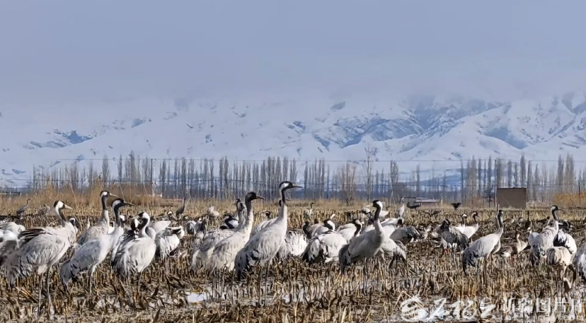 巩留县湿地迎来数千只灰鹤、灰雁等候鸟。巩留县融媒体中心供图
