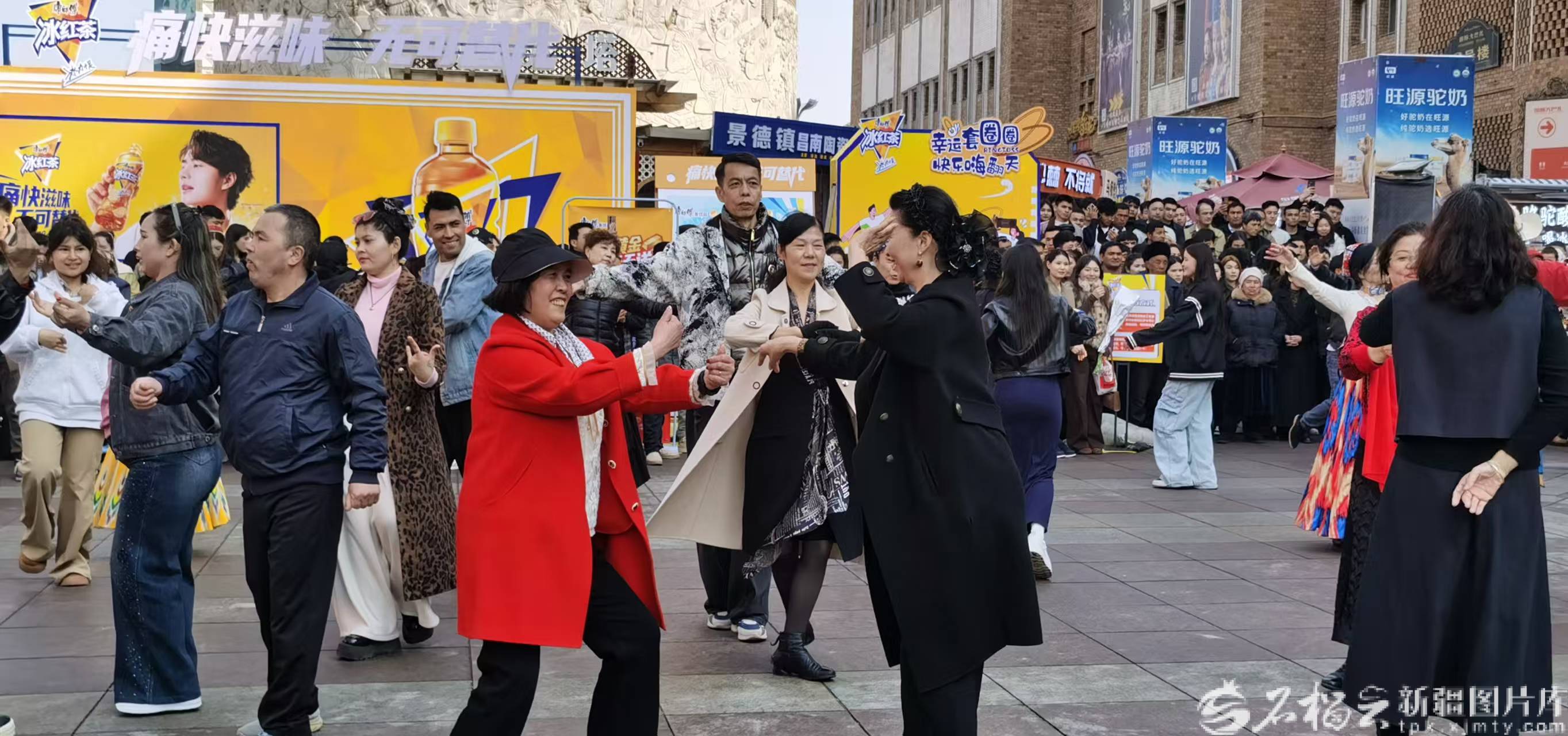 春寒料峭,凉意袭人。然而,新疆国际大巴扎景区观光塔前,是一片热火朝天的景象。