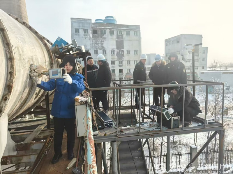 2月9日,昌吉州生态环境局工作人员开展废气比对监测。图/昌吉州生态环境局提供