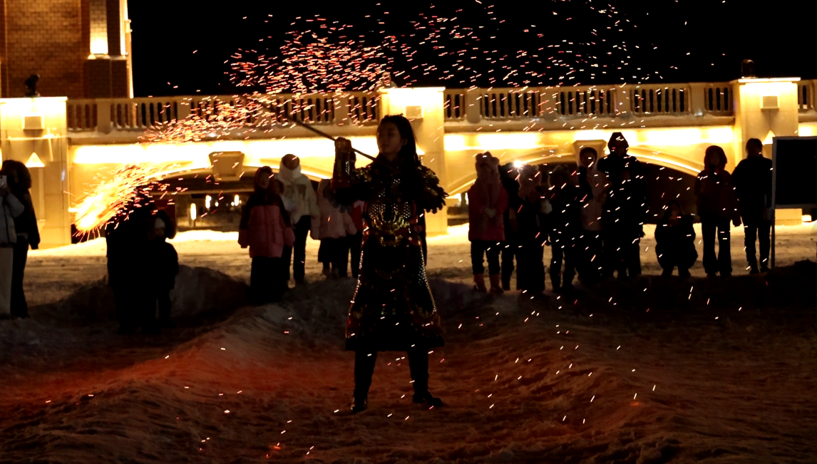 除夕前夜,寒风凛冽。谢卓雅在母亲帮助下穿好铠甲,点燃炭笼。步入空地,挥臂,旋转!炽热的炭花轰然绽开,化作流淌的火河、飞舞的火环,照亮了额尔齐斯河的夜色,也照亮了周围孩子们惊叹的脸庞。